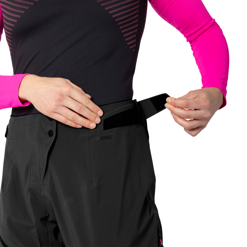 Das 3-lagige, PFAS-freie Dynashell-Material mit 20.000 mm Wassersäule bietet Dir zuverlässigen Wind- und Wetterschutz bei widrigsten Bedingungen. Gleichzeitig ist es sehr atmungsaktiv damit Du bei fordernden Anstiegen nicht überhitzt. Ein seitlicher Reißverschluss sorgt für Abkühlung, die Gamasche verhindert das Eindringen von Schnee und der Kantenschutz schützt beim Einsatz von Steigeisen. Der Hüftbund ist verstellbar für optimalen Sitz.