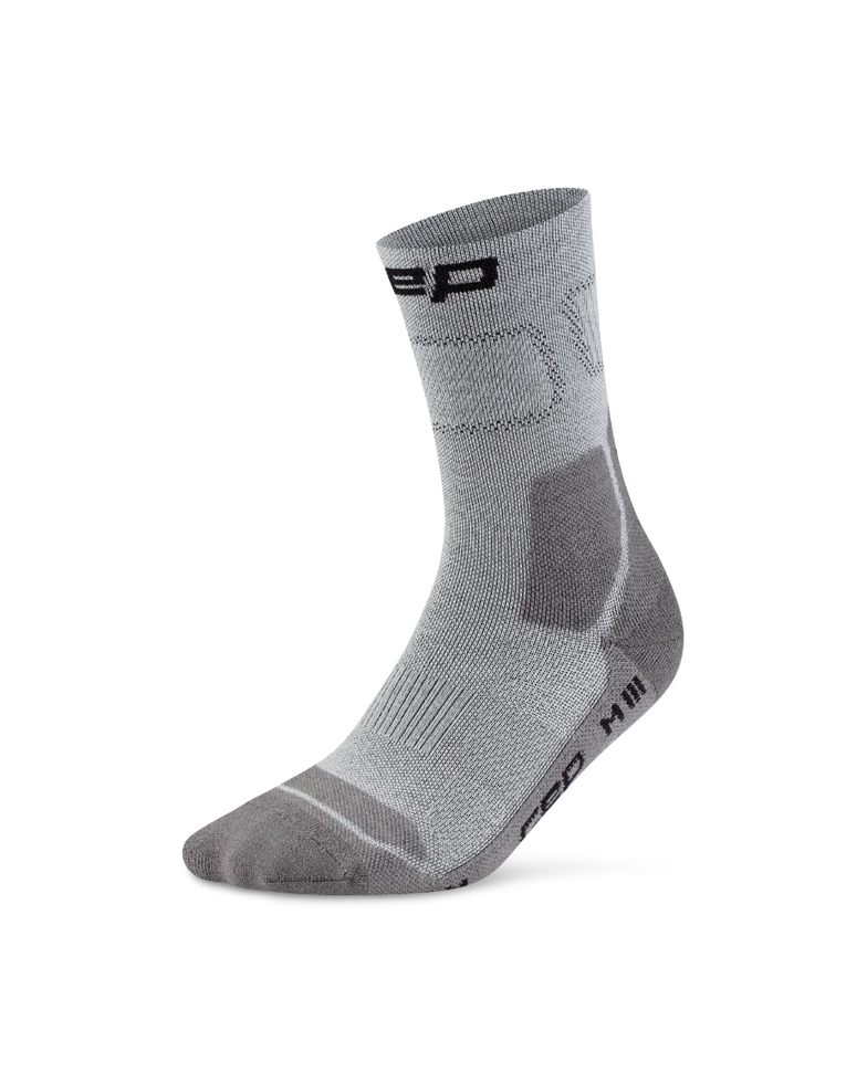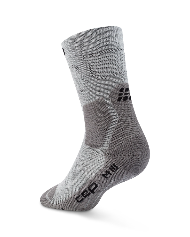 Die CEP Hiking Light Cushion Mid Cut Compression Socks kombinieren gezielte Polsterung und maximale Atmungsaktivität und sind dabei angenehm dünn gefertigt. Dadurch eignen sie sich ideal für Wanderungen bei warmem Wetter in leichten Wanderschuhen. Sie werden in Deutschland mit einer innovativen 3D Compression-Technologie hergestellt und bieten präzise kontrollierte Aktivierungs- und Unterstützungszonen mit Vorteilen wie verbesserter Gelenk- und Muskelstabilisierung und einem engen Sitz zum Schutz vor Reibung und Blasenbildung. Die anatomische Polsterung erhöht den Komfort, während Garne aus einem Merino-Wollmix für natürliche Thermoregulierung sorgen, damit die Füße bei längerem Tragen trocken bleiben und sich angenehm anfühlen. Die dreidimensionale Anti-Rutsch-Oberfläche erhöht die Griffigkeit und Stabilität.