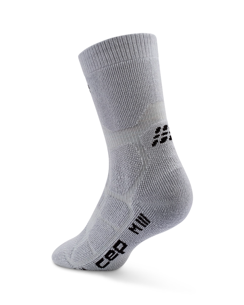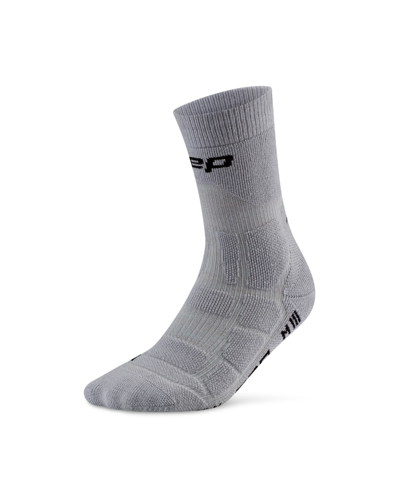Die CEP Hiking Max Cushion Mid Cut Socks bieten maximale Polsterung und Dämpfung für zuverlässige Unterstützung auf anspruchsvollen Wanderungen. Sie werden in Deutschland mit einer innovativen 3D Compression-Technologie entwickelt und bieten präzise kontrollierte Aktivierungs- und Unterstützungszonen mit Vorteilen wie verbesserter Gelenk- und Muskelstabilisierung und einem engen Sitz zum Schutz vor Reibung und Blasenbildung. Die anatomische Polsterung erhöht den Komfort, während atmungsaktive Garne aus einem Merino-Wollmix für natürliche Thermoregulierung sorgen, damit die Füße bei längerem Tragen trocken bleiben und sich angenehm anfühlen. Die dreidimensionale Anti-Rutsch-Oberfläche erhöht die Griffigkeit und Stabilität.