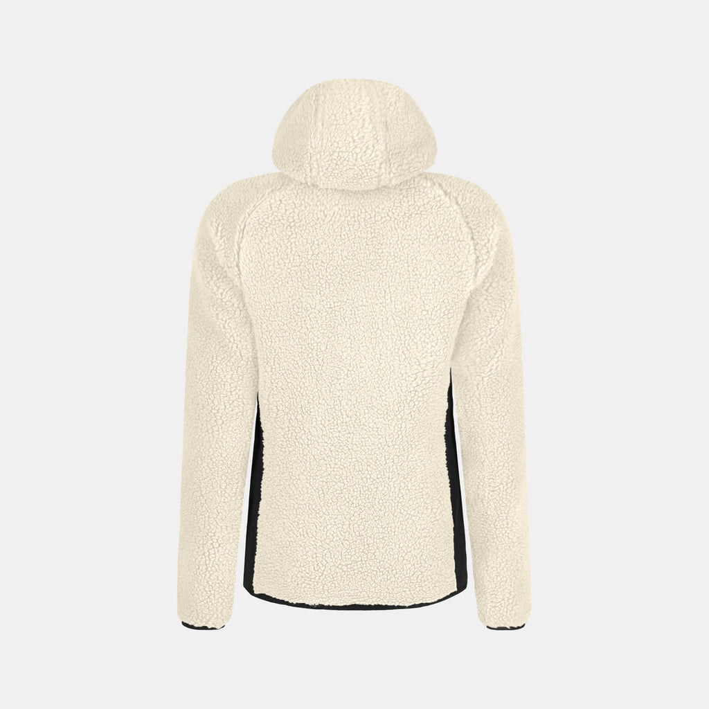 Die Kapuzenjacke mit Reißverschluss besteht aus einem Thermostrick, der einen hervorragenden Wärmerückhalt mit kuscheligem Komfort verbindet. Die atmungsaktive Synthetikmischung ist Lammwolle nachempfunden und reguliert Ihre Körpertemperatur, wenn Sie unterwegs sind. Das nach dem Global Recycled Standard zertifizierte Material ist außerdem pflegeleicht, sodass Sie dieses Oberteil immer wieder tragen können. Die elastische Kapuze, die Ärmelbündchen und der Saum sorgen für eine gute Passform, und mit dem Reißverschluss vorne in der Mitte können Sie unterwegs schnell für etwas Abkühlung sorgen. Ob bei einem entspannten Winterspaziergang oder bei Besorgungen in der Stadt, der Sherpa Maglia Zip Hoody für Damen ist ideal für ganztägigen, lässigen Komfort.